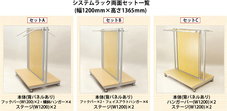 両面システムラック(W1200×H1365)のセット商品です。用途に合わせてセットをお選びください。
