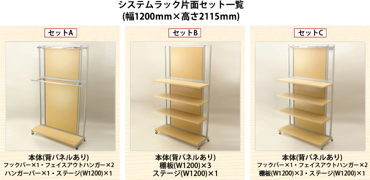 システムラック(W1200×H2115)のセット商品です。用途に合わせてセットをお選びください。