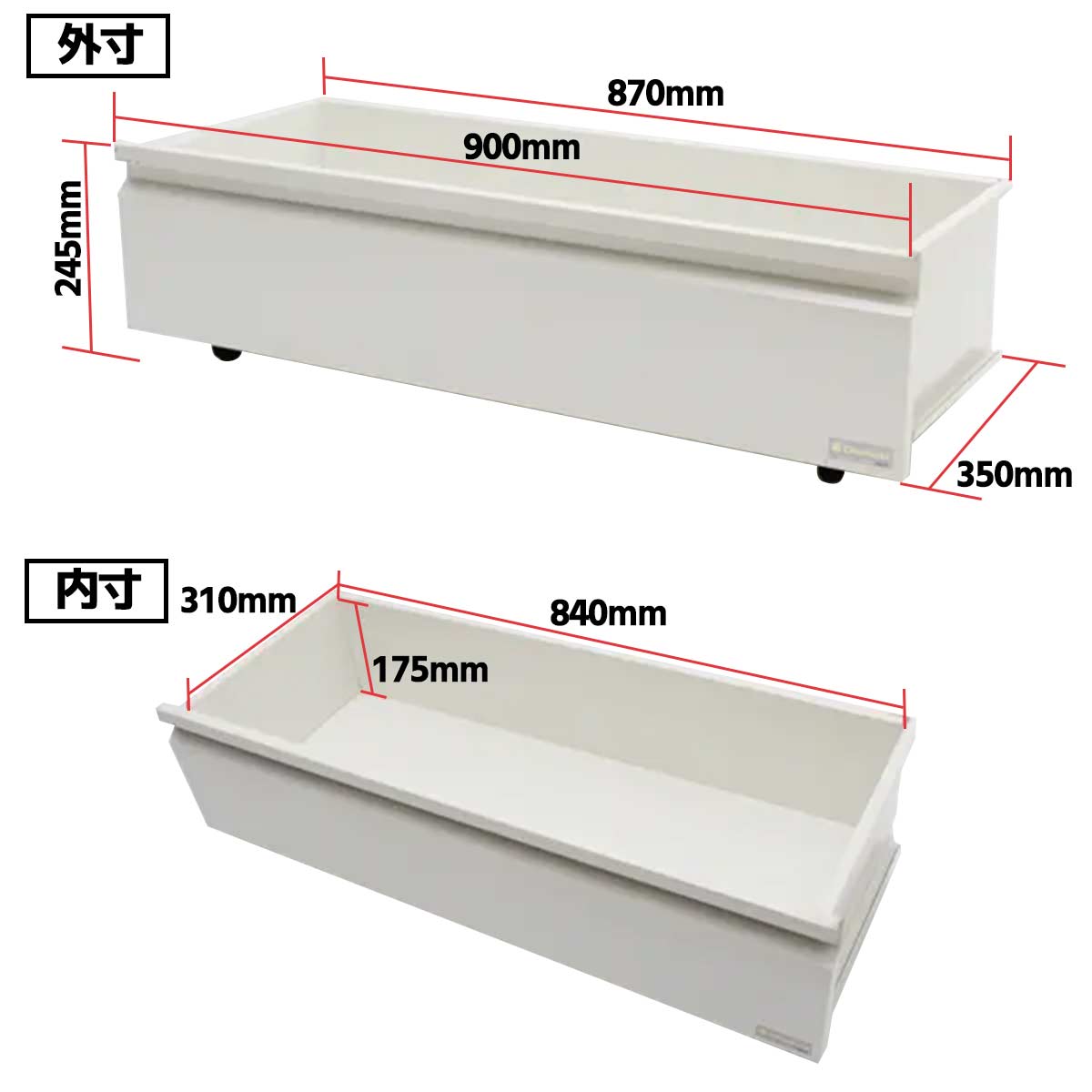 セット内容: ・基本什器(W900×H1350mm) ・棚板(W900)×4 ・ロールインボックス(幅900×奥行350×高さ245mm)×2