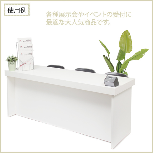 W1800の幅広のカウンターです。 2~3人の座り接客用受付カウンターとしても、幅広の展示台としてもご利用になれます。 中棚1枚付き 内側は中板付きでストックスペースとしてもご利用できます。